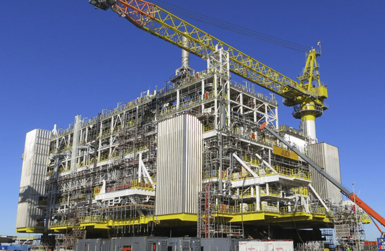 Alcance del Proyecto: Nuestro alcance incluyó la ingeniería de construcción, adquisición parcial, fabricación, finalización mecánica, precomisionado, comisionado, carga y aseguramiento marítimo de los módulos superiores de la Plataforma de Cabeza de Pozo Jasmine (7,425 toneladas), de la Plataforma Riser Judy (9,320 toneladas), del puente de la Plataforma de Cabeza de Pozo Jasmine (590 toneladas) y del puente de la Plataforma Riser Judy (895 toneladas).