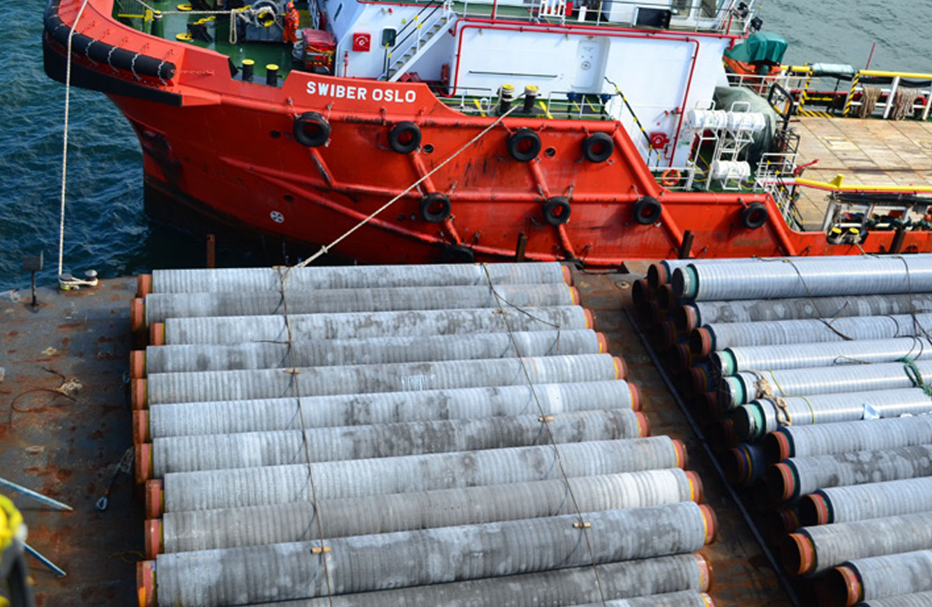 Alcance del Trabajo: Nuestro alcance incluyó la ingeniería, adquisición e instalación del oleoducto marítimo de 36” Ø x 77 Km. El proyecto fue ejecutado mediante una empresa conjunta entre Dragados Offshore y la compañía singapurense Swiber.